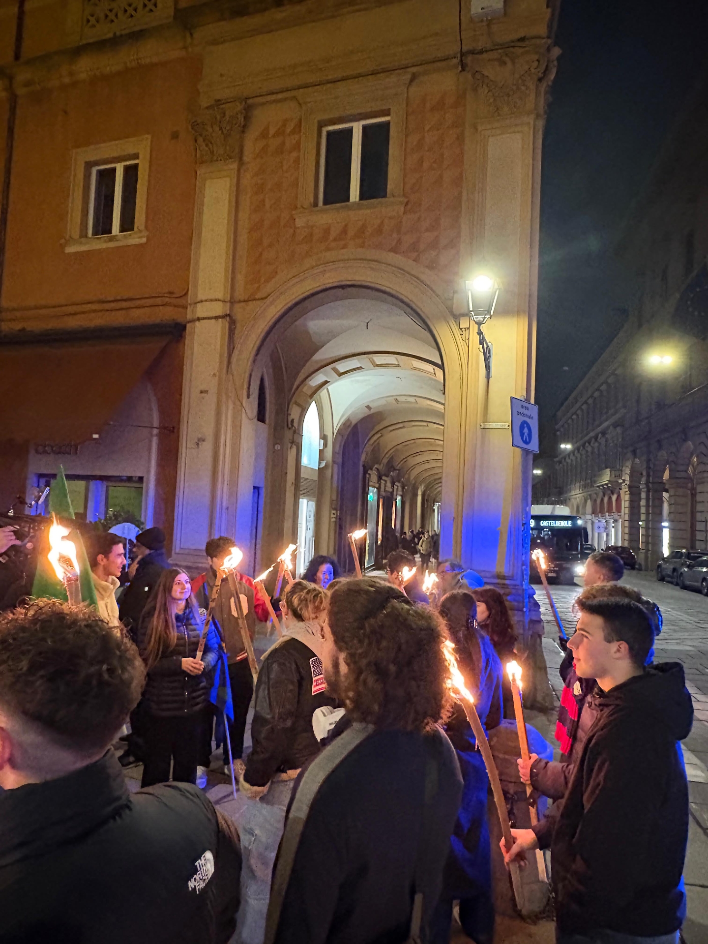 Come accade da ormai molti anni, il movimento giovanile di Fratelli d'Italia ha radunato i propri militanti all'inizio del tratto pedonale di via d'Azeglio, da dove, per commemorare le vittime delle Foibe, ha dato vita a una breve fiaccolata che, come sempre, avrebbe dovuto raggiungere Palazzo d'Accursio, dove sarebbe stata deposta una corona di fiori sotto la lapide presente nel Cortile d'onore che ricorda la tragedia dell'Esodo delle genti giuliane, istriane e dalmate.