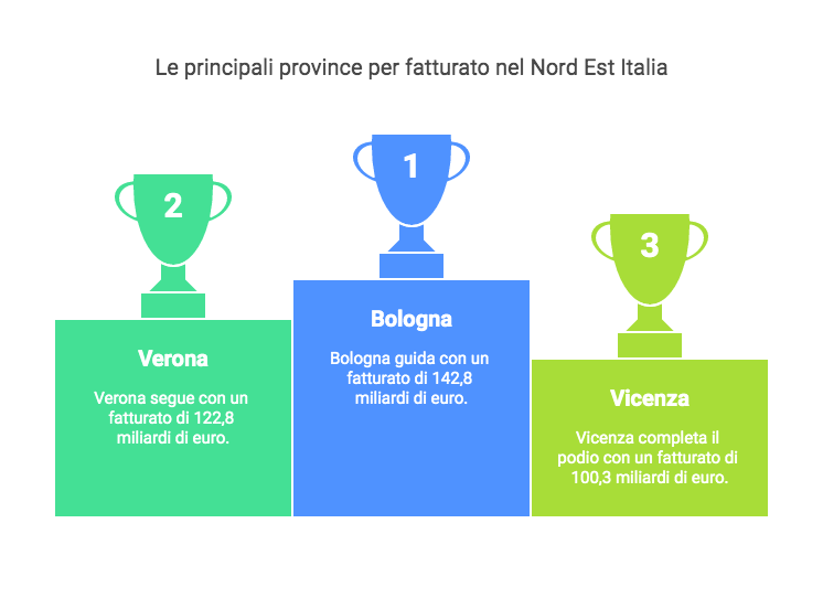 Nell'analisi sono stati esaminati sessantatremila bilanci di società di capitali con fatturati oltre il milione di euro nel Nord Est dell’Italia per l'anno fiscale 2023. Bologna si posiziona al primo posto con un fatturato di 142,8 miliardi di euro, segnando un incremento dello 0,1%. Segue Verona con 122,8 miliardi (+3,5%) e Vicenza con 100,3 miliardi (+1%). Le province di Piacenza e Belluno registrano il maggiore aumento percentuale del fatturato, con un incremento del 9,2%, seguite dalla provincia di Gorizia con il 7,8%. Sul fronte della crescita degli addetti, il Trentino (5,7%) supera l’Alto Adige (5,2%).