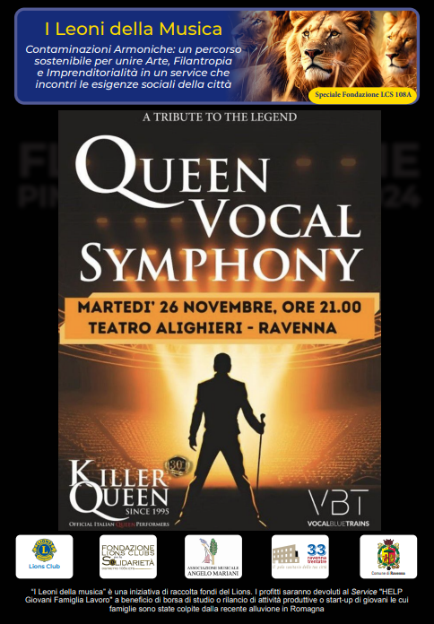 "Killer Queen Vocal Symphony" è il nome di questo concerto che si preannuncia come un viaggio emozionante di passione, energia e coinvolgimento. Il pubblico avrà l'opportunità di riscoprire i brani dei Queen sotto una nuova luce, apprezzando la complessità e la bellezza delle loro armonie.