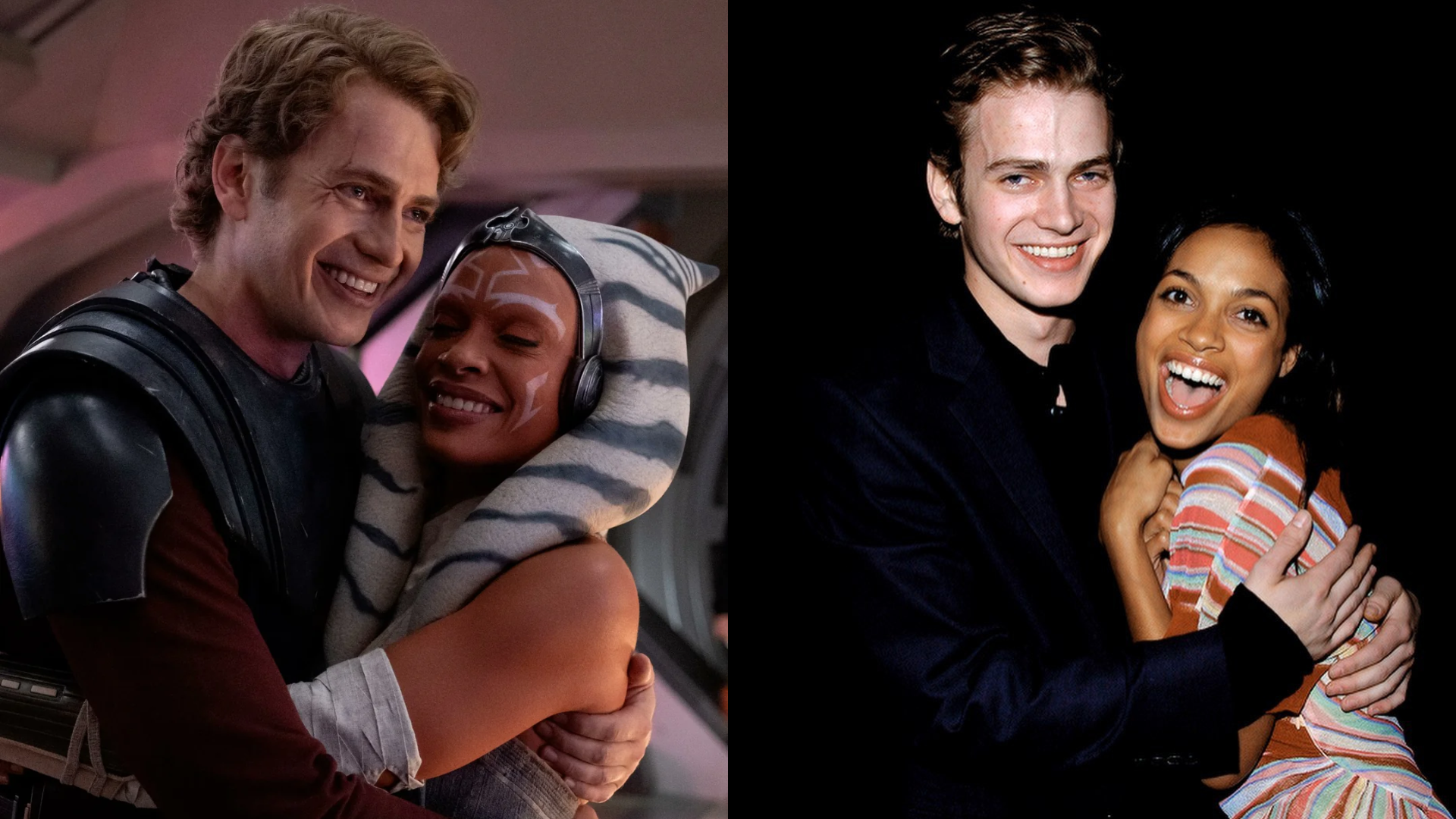 Hayden Christensen e Rosario Dawson nel 2023 (six) e nel 2004 (dex)