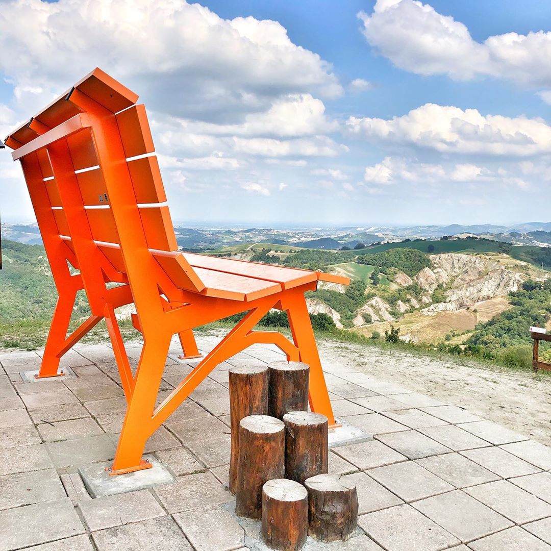 Panchina gigante di Montefiore Conca (RN): Situata in Val Conca, offre una vista sulla costa romagnola e parte di quella marchigiana.